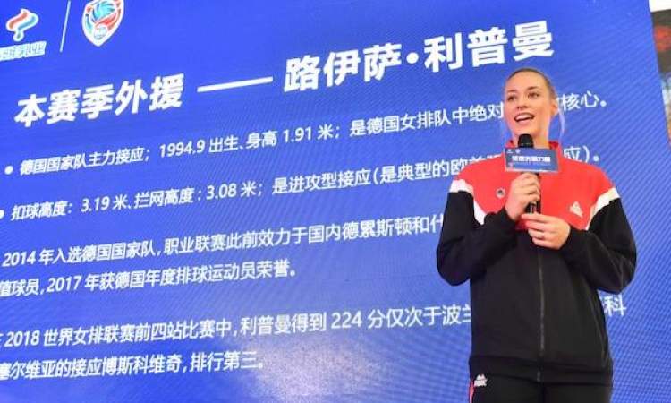 北京时间今天(10月23日)上午,上海光明优倍女子排球俱乐部举行中国排球超级联赛出征仪式,俱乐部新赛季引进的两名新外援:美国女排队长拉尔森和德国女排国家队主力接应利普曼也正式亮相。
