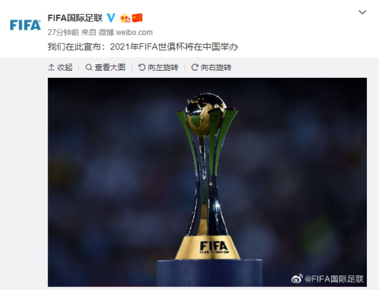 北京时间10月24日,国际足联理事会第十一次会议在上海召开,国际足联主席因凡蒂诺在会上宣布中国成为2021年世俱杯举办国,这是国际足联下属成年男子足球国际大赛首度落户中国。