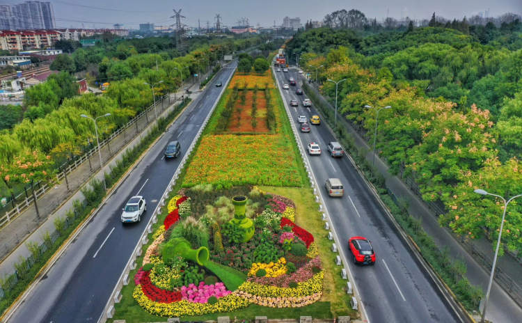 共青森林公园充分利用公园的森林本底植物层次和自然水系、地形等特点,将各景点间以花廊、花带、花海、花桥等串连,通过点、线、面多维度融合,营造出“一道、二门、八梁、多点”的全园布局格局。