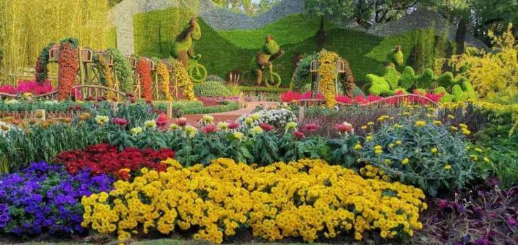 1.室外景点区:展示面积约1.5万平米,由43个大型景点组成。依托森林背景和不同主题共设置了4大组团,分别为“城市山林”、“菊耀盛世”、“秀美山河”、“海上风情”。