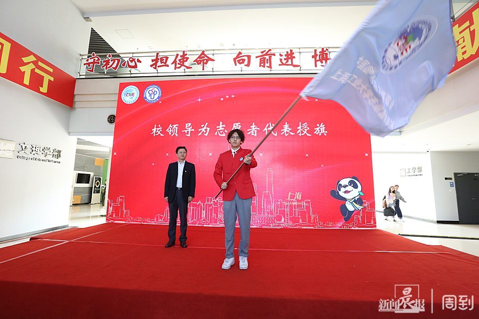 今天下午,上海第二工业大学150多名大学生第二届中国国际进口博览会志愿者上岗庄严宣誓,表达服务进博、贡献青春的信心与决心。