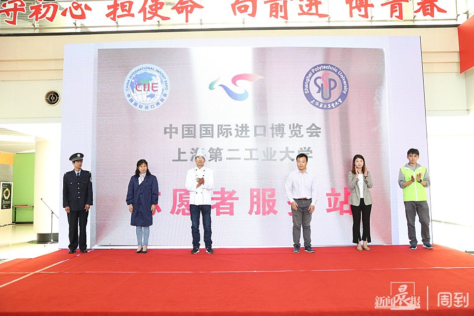 “一”,校内成立一个进博服务站,专业教师、辅导员、后勤宿管、食堂工作人员、学生等全力参与,做好进博会学生志愿者的服务及后勤保障等;