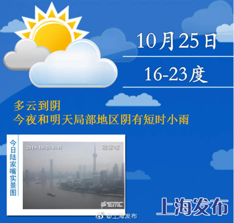 今天多云到阴,16-23度,夜里局部地区有短时小雨 周到君 2019-10-25 来源:周到上海 申城今天天气为多云到阴,气温在16-23度。今天夜里和明天局部地区阴有短时小雨,雨势较弱,风力也不大,偏北风3-4级。预计明天受弱冷空气影响,白天气温将跌至20度以下,昼夜温差较大,深秋特征愈发明显。大家要根据天气变化及时增添衣物,预防着凉感冒。 来源:周到上海 作者:周到君 赞一个 (0)