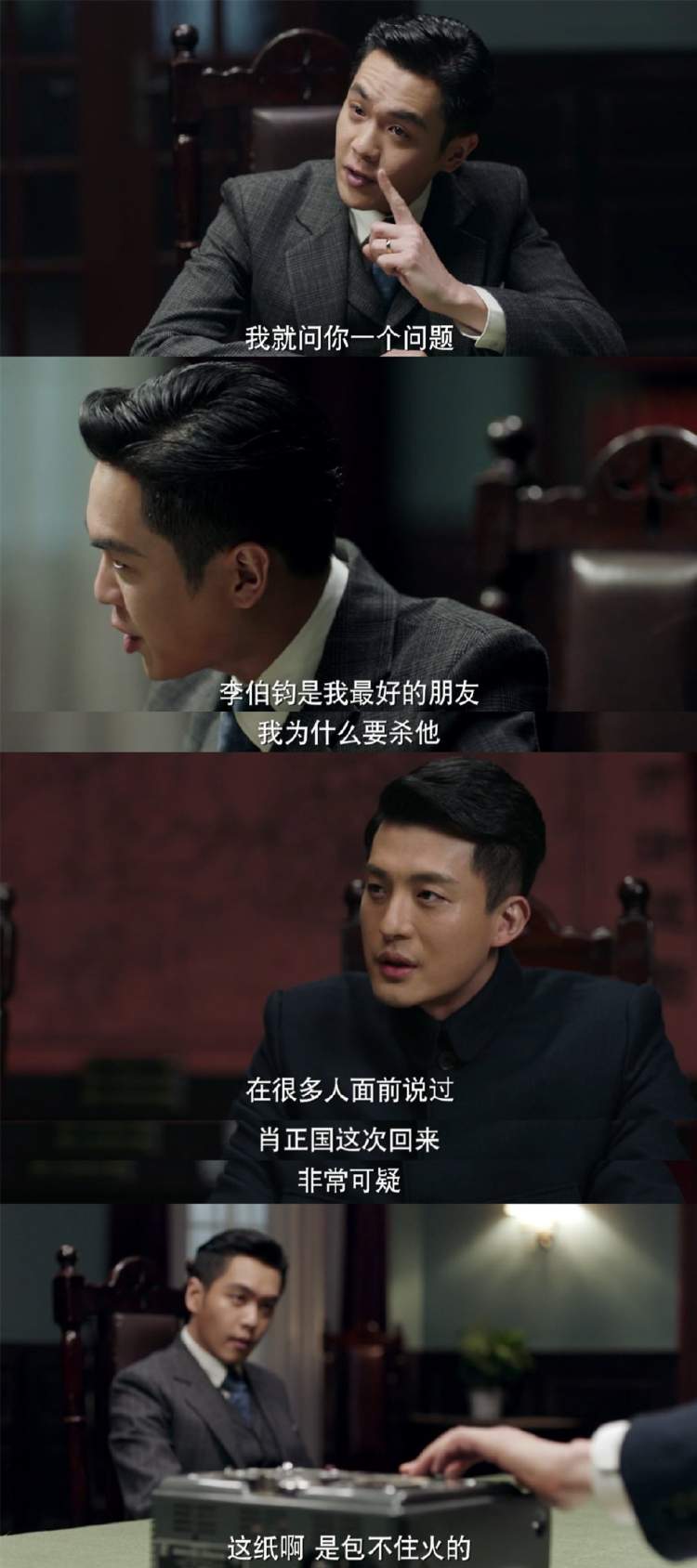 谈及揣摩角色的心得,张若昀直言,虽然原著很精短,但人物塑造得很立体,剧本也有足够高的还原。“剧本给陈山和肖正国设置了很多截然不同的习惯,演员挑战起来也更有难度和辨识度。比如他们一个抽烟、一个不抽烟,甚至连左右手的习惯都不一样,肖正国是左撇子”。
