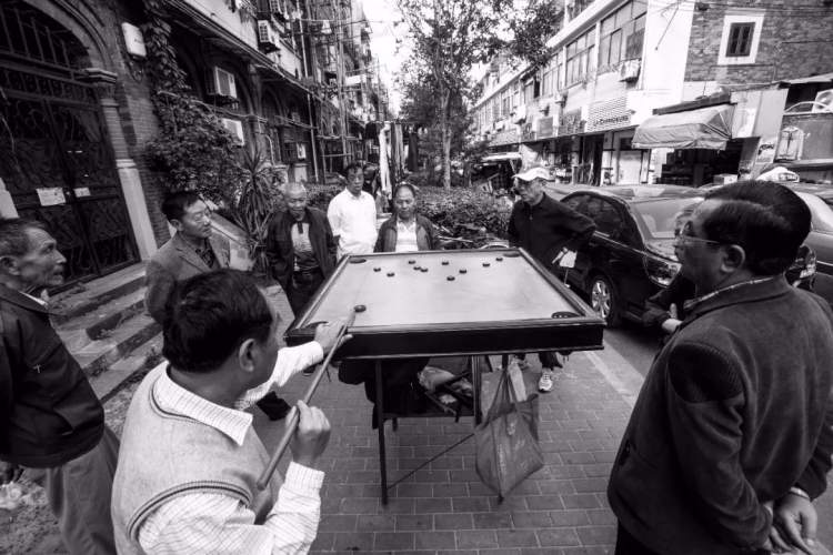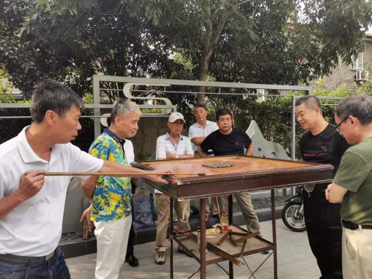 今年春天,我们在襄阳南路上留意到一张麻将桌。一个爷叔、三个阿姨围坐着,四周站满了围观的人,连非机动车道上的自行车都停下来张望。
