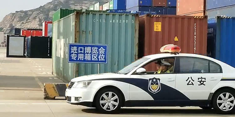 姚纲说,为了给进博会参展物资的装卸运输开辟一条绿色通道,洋山公安分局特地协调港区三家码头公司在装卸码头派专人守护。待集装箱装载完毕后,在不影响场区其他作业的情况下,由警车引导一路被“护送”至专用箱区。