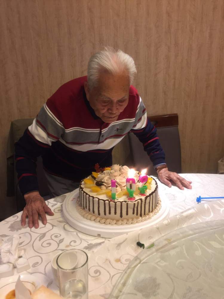 ■蔡勗奇老人吹生日蛋糕上的蜡烛