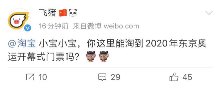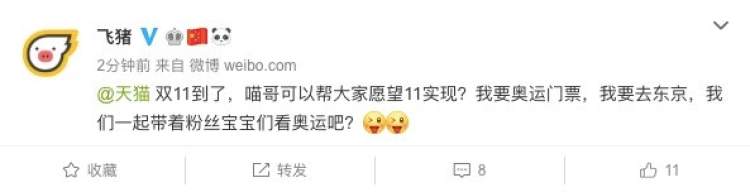 10月28日,周到君发现@飞猪 官方微博一连发布10多条与奥运相关的内容,求票之心溢于言表。