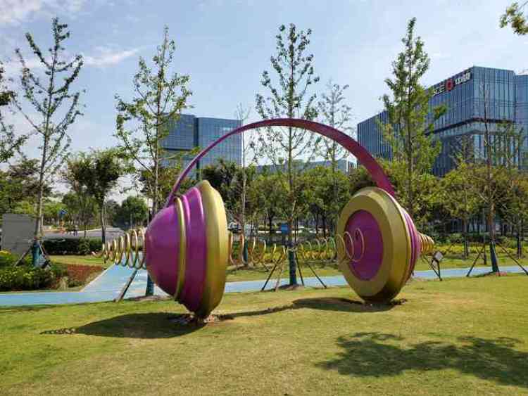 比如,申长路近舟虹路绿地上象征商务区“大交通”的雕塑作品《桨》、中骏广场绿地上名为《时代的强音》的粉色耳机都是今年大赛中获奖的作品,如今均已落地商务区,成为大虹桥新的打卡点。