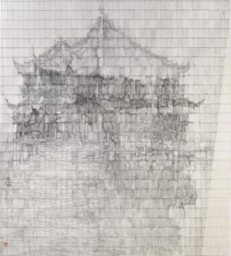 3、王斌 中国画作品《城之一隅》