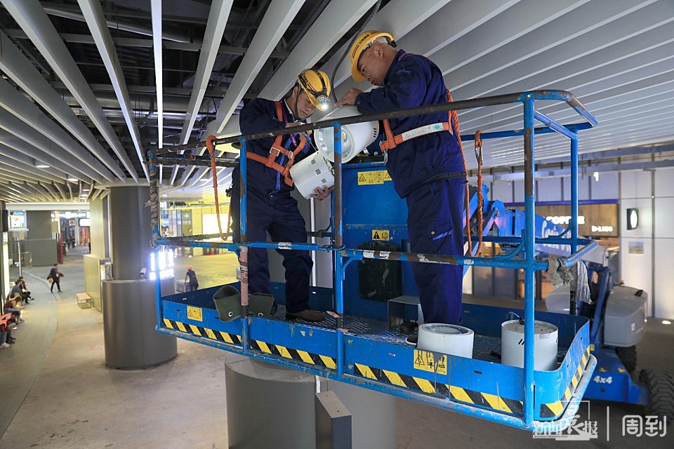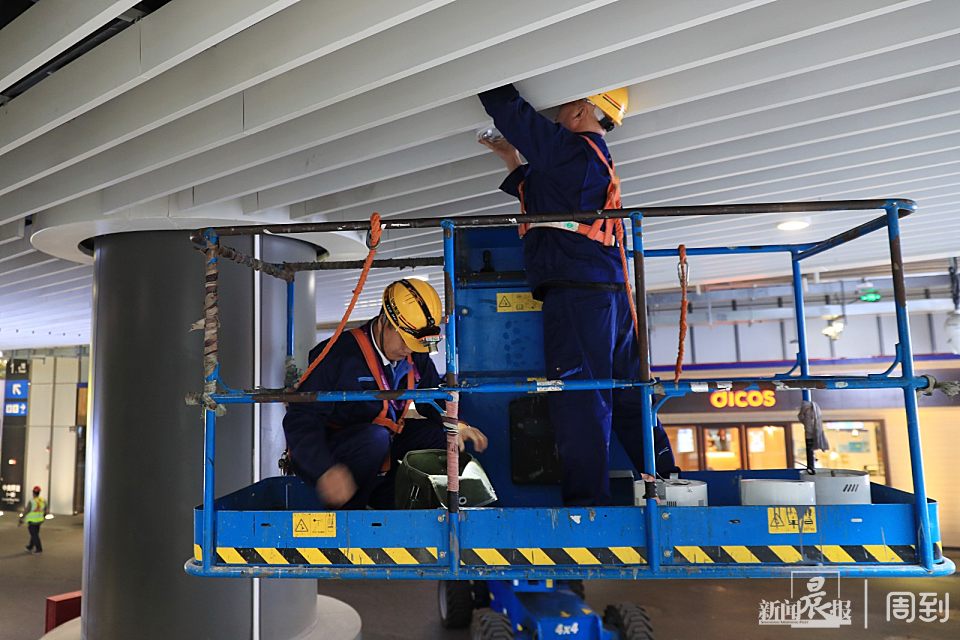 进博影像 | 保证场馆每一盏灯都完好 任国强 2019-10-29 来源:周到上海 国家会展中心(上海)靠近中央广场的通道内,两名工人站在高高的电动升降车上调换照明灯光。为确保场馆、通道照明灯光完好,工作人员是不断巡查,发现有不亮的灯就及时进行更换。 来源:周到上海 作者:任国强 赞一个 (0)