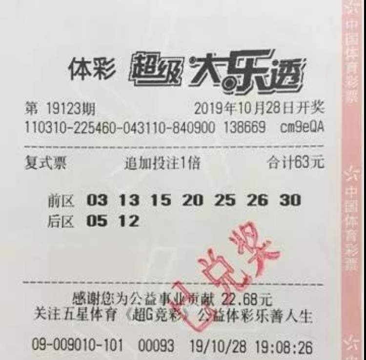 10月28日晚,体彩大乐透第19123期开奖,前区开出号码“03、13、15、26、30”,后区开出号码“05、12”,上海闵行彩民投入63元,单票命中1803万元(详情戳我)。