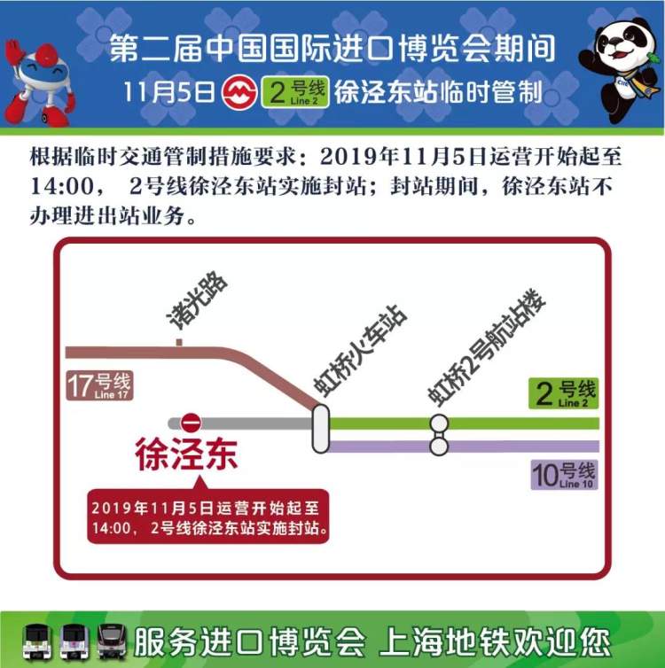 记者在徐泾东站采访时获悉,根据临时交通管制措施要求,下月5日运营开始起至14:00, 2号线徐泾东站实施封站;封站期间,徐泾东站不办理进出站业务。届时2号线其他站点将保持正常运营