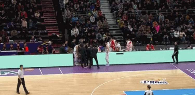 在一次暂停期间,为了听取战术安排,韩德君顺势坐到广告牌上,常看CBA的观众或许对这样的操作习以为常,但在一旁看到这一幕的裁判却突然快步跑到韩德君身旁,吹罚了他一次技术犯规。