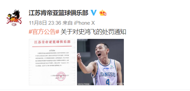 事发,俱乐部决定对球员史鸿飞给予“严重警告”,并处以停训一天的处罚,责令其认真反省,务必在今后的比赛中做好表情管理工作。用这样一张队内“罚单”,表明球队的不满。