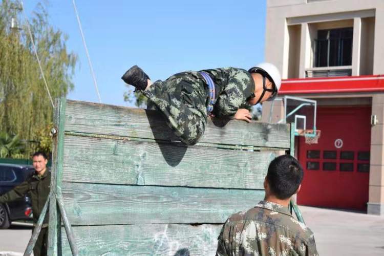 最后,消防员向孩子们展示了楼层滑绳救援、攀登挂钩梯、翻越障碍等消防技能。