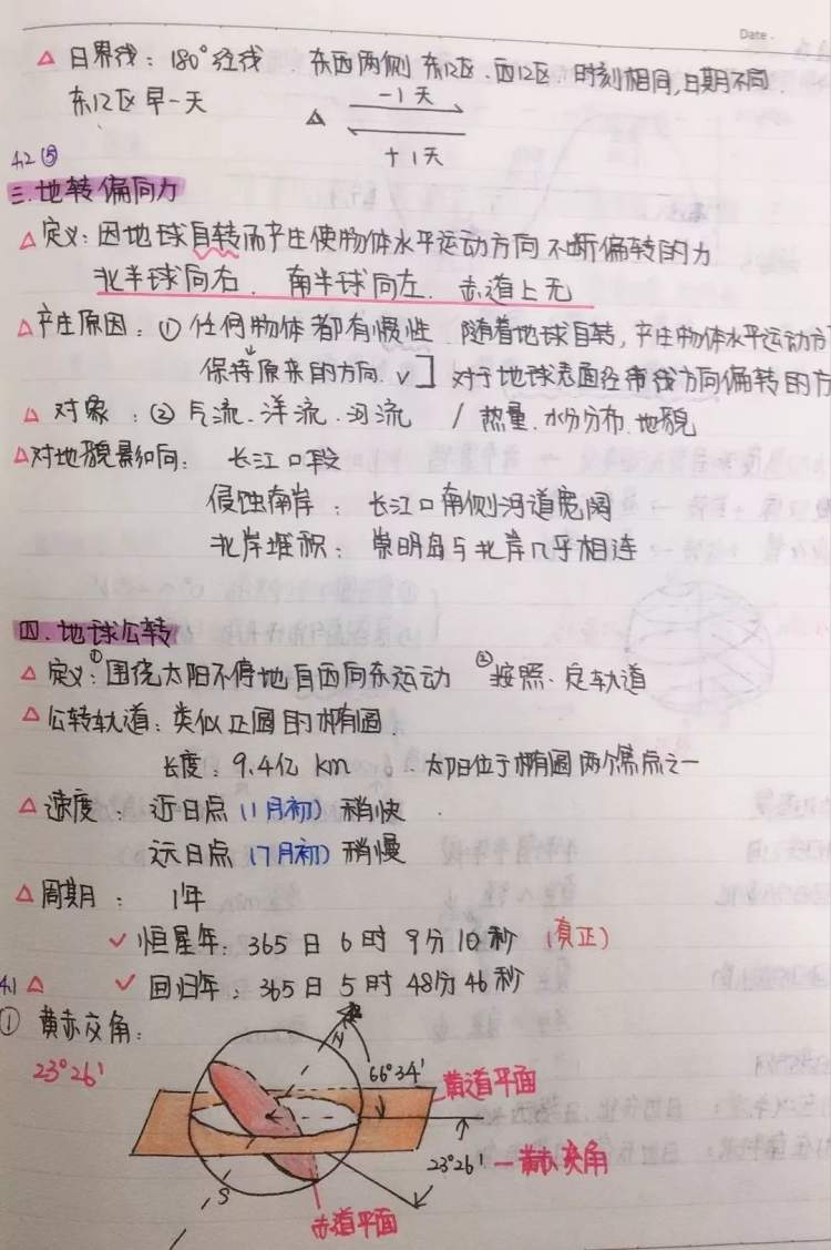 这是我的地理笔记。有些图片其实可以从网上打印,但是我选择了自己绘画,来帮助我更好地记忆这些知识。笔记中也用了不同的颜色区分重点,使之一目了然。