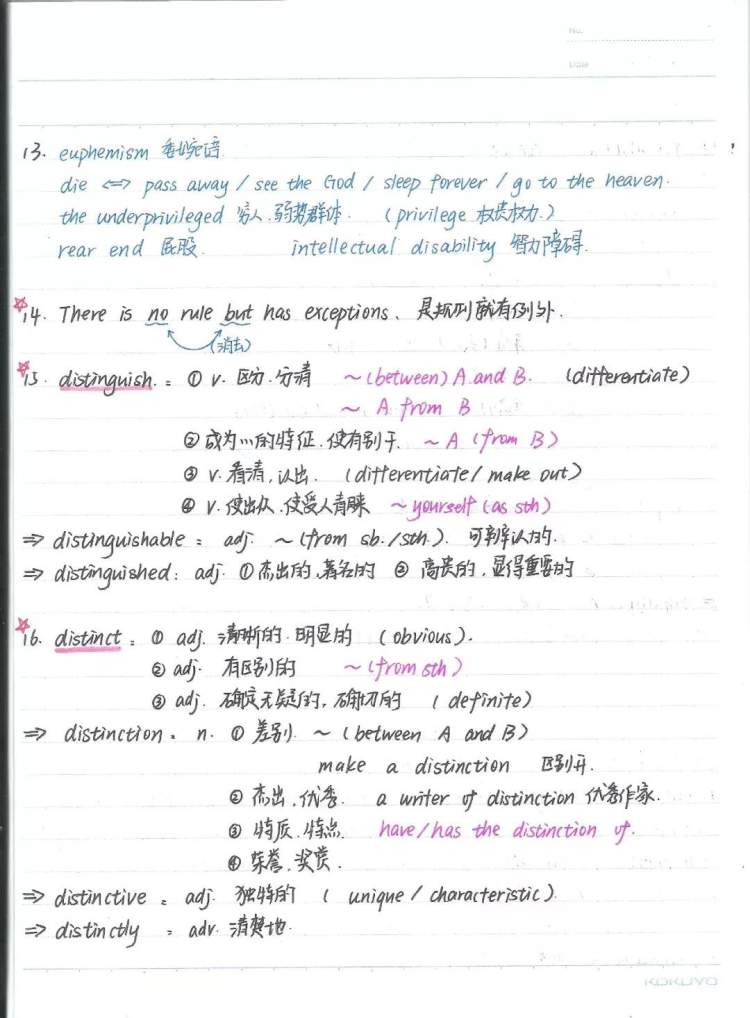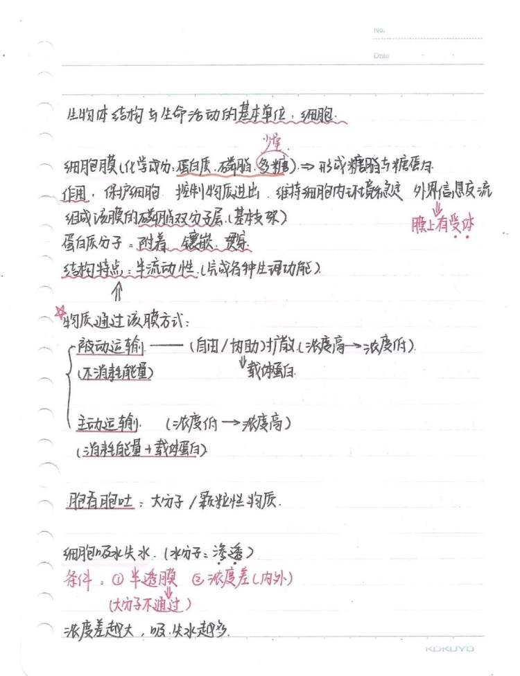 在我看来,清晰、有条理的笔记,可以帮助自己更快消化吸收新知识。在笔记中,我习惯用不同颜色的笔圈划书写,来提醒自己知识的重点与区分;此外,我在适当部分通过画图、贴图,来更直观地让记忆与图像产生联系,帮助理解。一直以来,我将笔记视为学习、复习的首选资料。