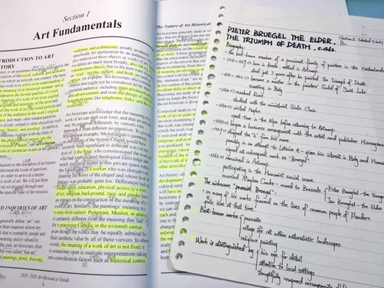 笔记,并不是简单的抄写。整理笔记的过程,其实是温习课堂、加深理解、吸收内化的过程;整理而成的作品,尤其是那些根据个人理解标的重点、作的圈划,成为复习备考时的“独门利器”。