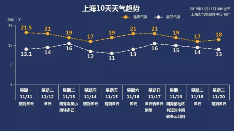 根据天气预报,周五早晨受辐射降温影响,市区仅11℃,郊区在10℃以下。当天最高气温有望反弹到19℃。