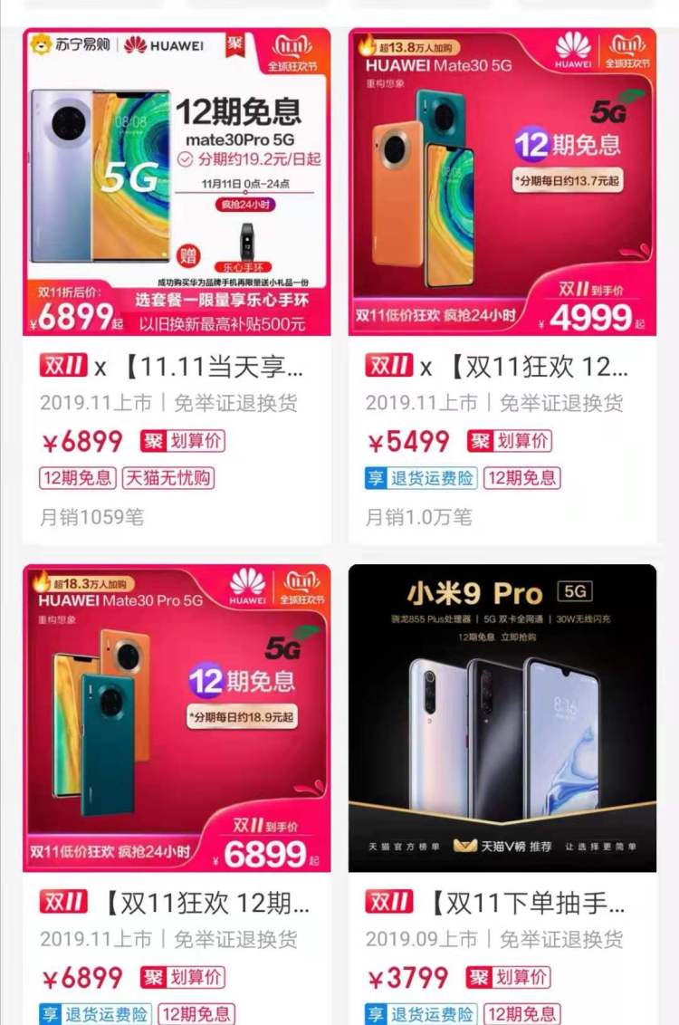 5G、智能家居等新技术带来的新产品,更通过天猫双11迅速成为席卷全社会的新消费浪潮。开场1小时,5G手机在手机成交排行榜TOP 10中占据两席,“5G手机”的搜索量达1000万。