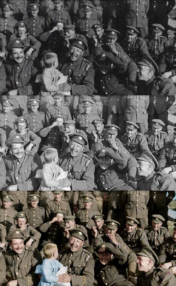 “看到那群十五六岁的少年对着镜头大笑,想到他们下一秒或许丧命枪炮之下,有种痛彻心腑的感觉。”影片用技术“复活”了战争中普通人的面孔,对于如今的观众来说,这是一次见证真相,触动心灵的难得体验。