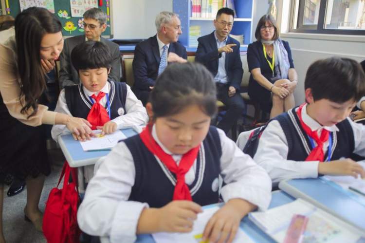 当天,107名英国数学教师开始在沪交流2周。他们除了在上师大参加专业培训外,还将走进上海9个区70余所中小学基地学校。今天下午的上海市实验小学,是这些英国数学教师听课的第一所上海市中小学校。