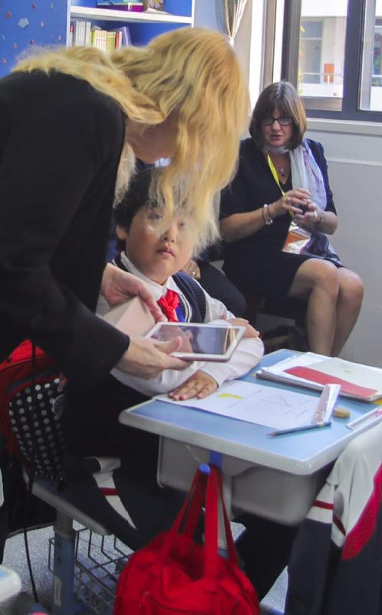 “在黑板上的枫叶、茶壶、蜻蜓、圆形中,哪个不是轴对称图形?”下午(11日)2点45分, 上海市实验小学三年级(3)班的课堂里,方懿如常走上讲台。