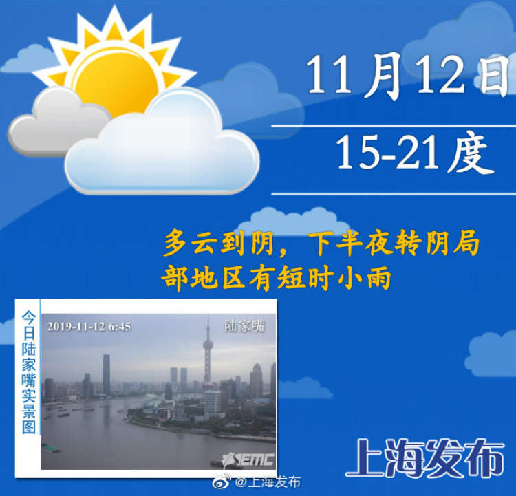 今日多云到阴,下半夜局地小雨,15-21度 周到君 2019-11-12 来源:周到上海 本市今天多云到阴,下半夜转阴局部地区有短时小雨,最低温度15度,最高温度21度,早晚温度较低,小伙伴们要注意保暖,不要感冒啦!明天申城受冷空气影响将迎来一波降温并伴有降水,不过,冷空气过后,气温会迅速回弹,周末最高气温将重回20度以上。 来源:周到上海 作者:周到君 赞一个 (0)