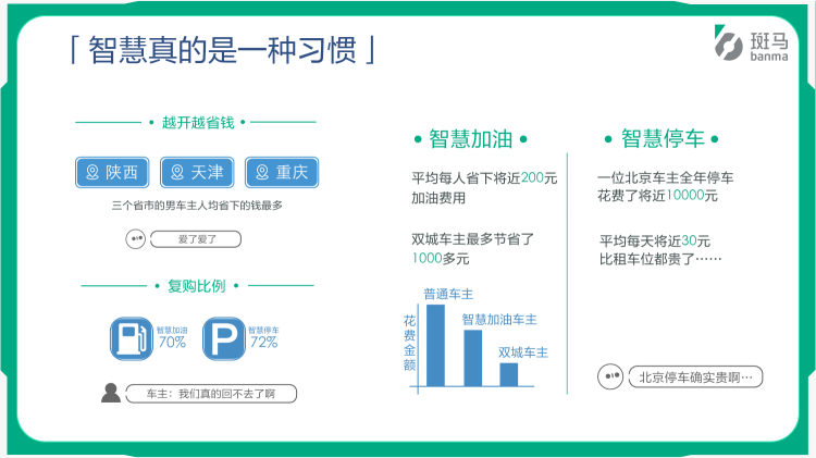 相比下车排队缴费、停车摇窗取卡等传统加油、停车方式,互联网汽车老司机们在尝到智慧停车和加油的便利与甜头之后,提升复购的概率。
