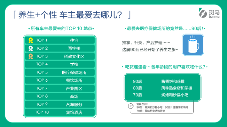 11月13日,斑马网络发布的业内首份《2019智联网汽车出行消费报告》(以下简称《报告》)中,双城车主的“奋斗+奔波”、这届90后的“养生+个性”、这届车主的“省钱+智慧”,报告展示了不同年龄层车主的生活喜好和“省钱经”。
