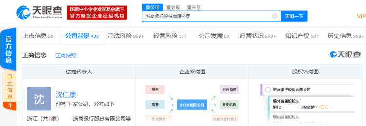 天眼查数据显示,浙商银行是一家总部设在浙江的股份制商业银行。该银行通过四个业务分部运营:企业银行业务分部涵盖向企业客户、政府机构和金融机构提供金融产品和服务;零售银行业务分部涵盖向个人客户提供金融产品和服务;资金业务分部涵盖货币市场交易、回购交易、债务工具投资、自营或代客经营金融衍生业务,以及其他业务分部。公司于1993年4月16日成立,注册资本1871869.678万人民币,法人代表沈仁康。