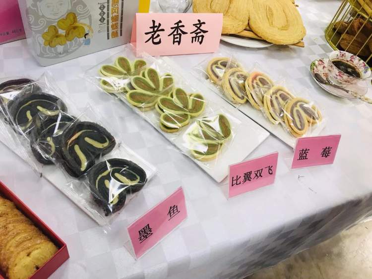 记者在现场看到,除了最常见的“原味”蝴蝶酥,以及市场上已有售卖的巧克力味蝴蝶酥,此次比赛中仅口味创新就已经大有看点,比如国际饭店的蝴蝶酥就推出了“苔条味”——
