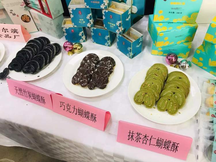 又比如哈尔滨食品厂就带来了“天然竹炭蝴蝶酥”和“抹茶杏仁蝴蝶酥”,以天然竹炭款为例,为了让颜色更饱满,在制作过程中对原料的配比也更加讲究。相关负责人表示,此次的创新也是为了更好地满足年轻人的消费需求,具体的上市时间还在考量中,预计明年可以和大家见面。