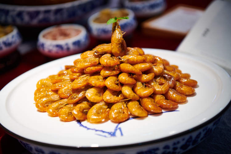 其中不得不提的就是上海老饭店的“镇店之宝”——金牌八宝鸭和本帮油爆虾。由上海老饭店创制的“上海名菜”金牌八宝鸭是一道经典的本帮名菜,工序复杂,首先要将整鸭拆骨后填入火腿、鸡肉、栗子、笋、干贝等八种食材并与糯米、酱汁充分混合,经数小时精心烹制后鸭身浓油赤酱,糯滑可口,香气四溢,闻之食指大动。受此启发,老饭店还曾在今年端午节期间推出过八宝鸭粽,其新老结合的创意巧思深受市场青睐。