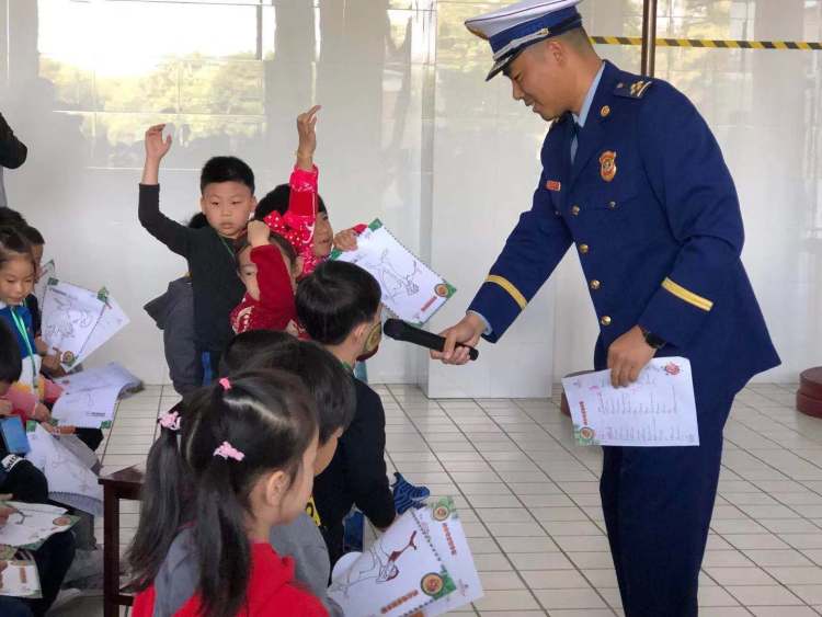 接着,“火焰蓝”们向小朋友们演示了火灾报警、燃烧三要素、吹不灭的蜡烛等有趣的消防小实验,小朋友们踊跃回答问题。