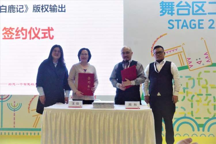 华东师范大学出版社现场签署版权输出协议2项,达成版权输出意向15项,涉及英、马、意、葡、韩等语种。“新说山海经系列”原创神话绘本《白鹿记》达成马来西亚语、意大利语版权输出。