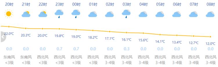 白天气温整体呈下降趋势,傍晚以后还将降至9-10℃。