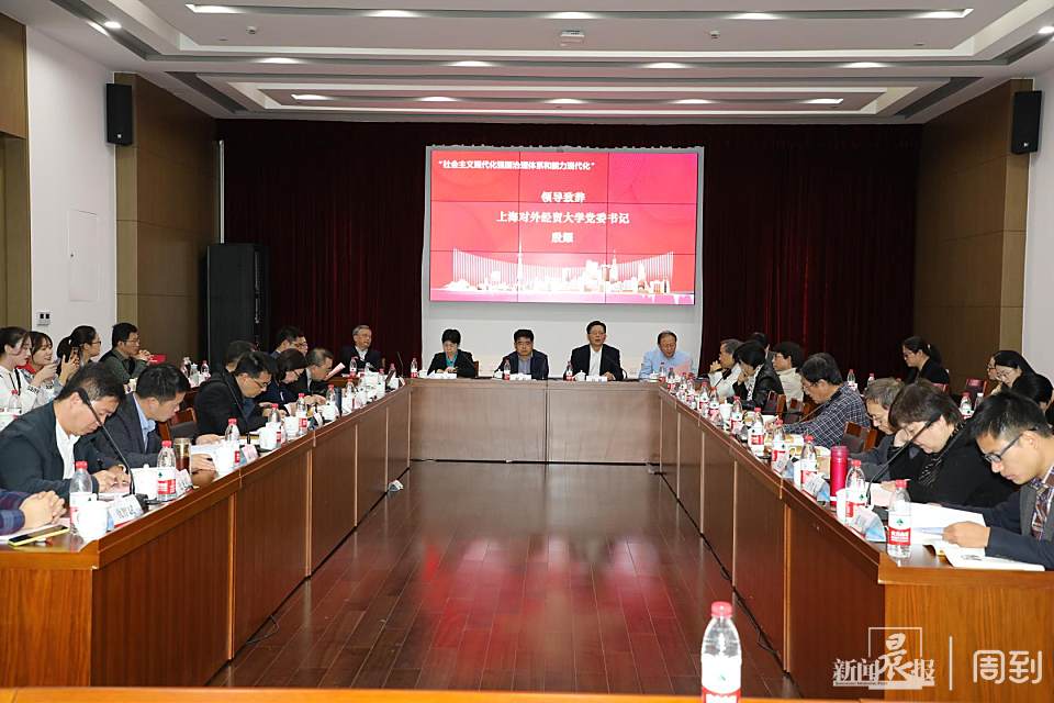 上海对外经贸大学党委书记殷耀希望学校中国特色社会主义理论体系研究中心通过本次研讨会,加强交流合作,凝聚各方力量,努力建构全方位开放合作的体系,着力打造协同攻关的重要研究平台。
