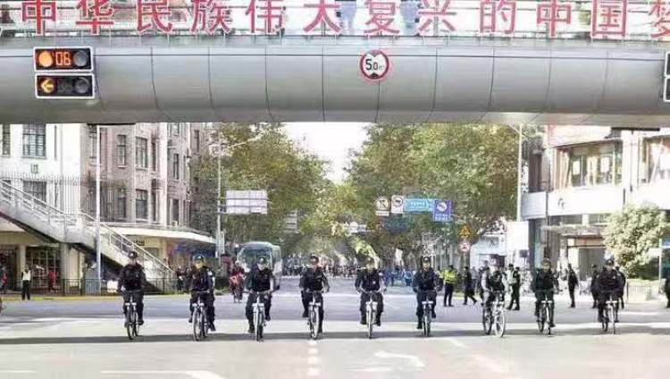 在护赛的过程中,每位跟在梯队后方的骑警需要观察巡控,在路口压道封锁,全程保护运动员的安全。与摩托骑警不同的是,自行车骑警环保、无噪音,可以更精确地控制骑行速度,对运动员的干扰降到最低,用黄浦公安分局特警支队突击中队负责人任炽亮的话来说,就是“默默守护”。