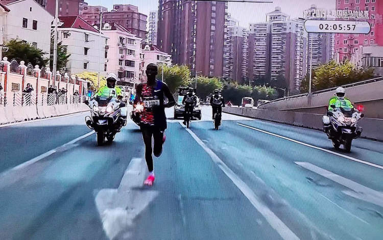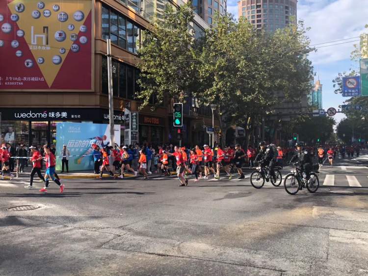 早晨7点,鸣枪响起,38000多名中外选手在外滩金牛广场出发。