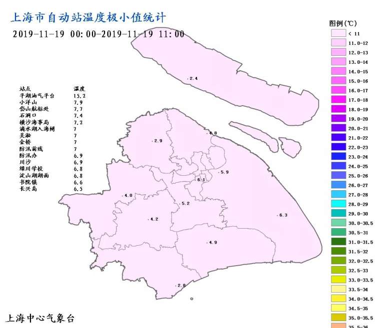 市气象局刚刚公布,今天早晨徐家汇站测得的最低气温只有6.1℃,创下了今年下半年的新低,而郊区温度更低,多在2-5℃左右。好在太阳公公准时“报道”,白天的最高气温攀升至13℃附近,走在阳光下总算微微有些暖意。