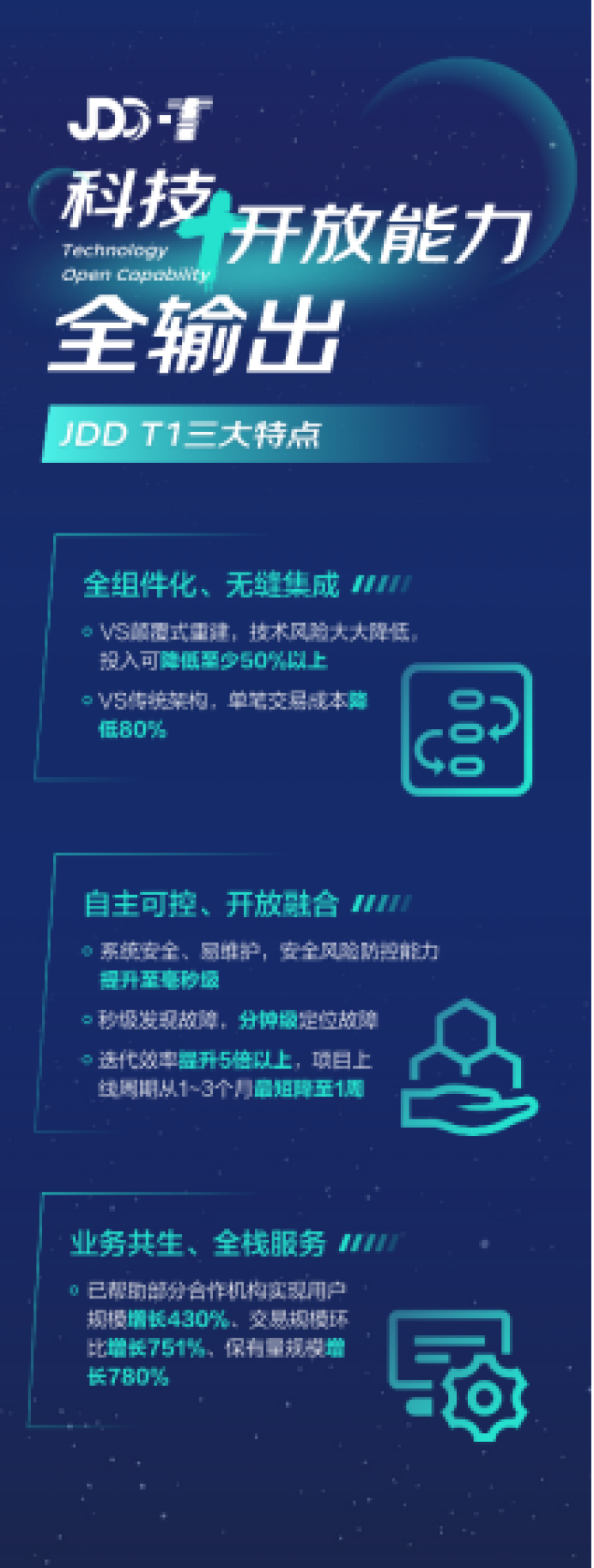 据悉,JDD T1具有全组件化,无缝集成;自主可控、开放融合;业务共生、全栈服务在内的三大特性,总体来看,T1的全景解决方案涵盖了数百个产品和组件,这些产品与组件可根据每家金融机构的实际需求灵活定制,围绕“科技+开放”的能力建设形成针对性的解决方案。