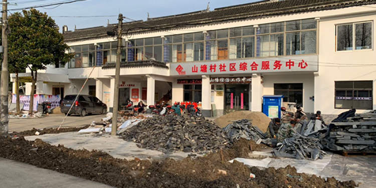 而在今年年初,山塘村的村委办公区还被高高的灰色水泥墙和红色栅栏围着,如果门一关上,村民就被拦在外面一条窄小的过道上。