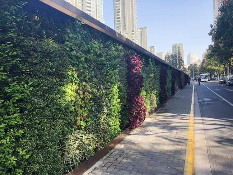 经区绿化部门工作人员介绍,绿墙围成的区域是一个工地,常年有车辆进出。绿墙建成后,对于工地灰尘和马路扬尘起到了吸附作用。为了达到美化环境、净化空气的作用,区绿化部门在绿墙的绿植选择上也兼顾了美观性和实用性。