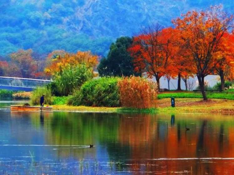 多年前,廊下郊野公园开园,廊下的这个枫树苗圃立刻成了“网红”,来此打卡的游客络绎不绝,有的甚至将树叶摘下来当做拍照道具。枫叶岛占地300亩,每到深秋,火红一片,美不胜收。