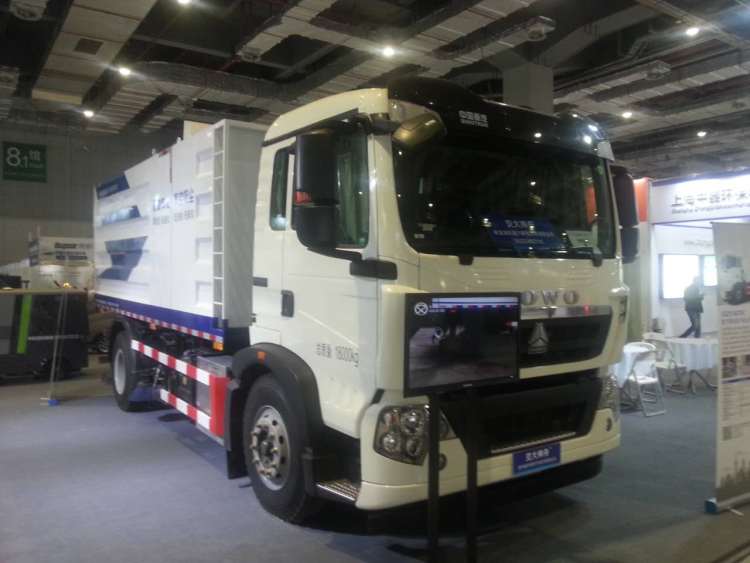 在马路上,人们常可见到清洁工在驾清扫车清扫马路时,会弥漫起一阵阵灰尘。 今天,记者在展会上看到,一款派头十足的“智能化吸尘车”吸引了众多参观者的目光。“我们这台设备运用负压纯吸原理,在马路上作业时没有二次扬尘,排放低于PM2.0。”工作人员介绍说。