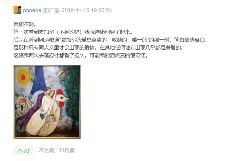 “夏加尔的爱是圣洁的、救赎的、唯一的”