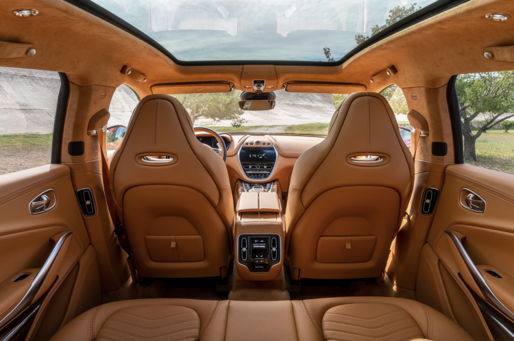 座椅部分采用由阿斯顿·马丁长期合作伙伴Bridge of Weir提供的Caithness豪华全粒面皮革。此外,DBX为车顶内衬和天窗遮阳帘提供豪华Alcantara®面料,不仅保证了内部座舱材质与色彩设计的和谐与绝佳的遮光遮阳效果,同时又不影响乘坐时的头部空间。