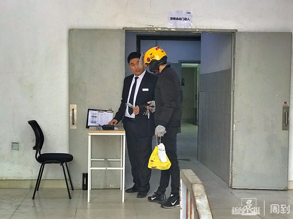 此前,大厦曾规定,外卖员只能从货梯进出,目的是为了防止食物洒漏在客梯,以及为客梯使用高峰期分流。但是,部分外卖员从货梯上楼后,又会从客梯下来,为了让大家都遵守规定,物业制定了押金规则,外卖员想要拿回押金,就必须从货梯口出去。